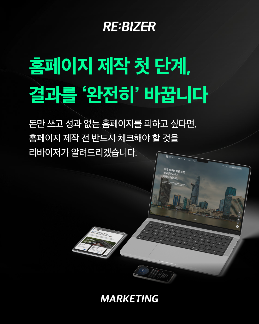 성과 없는 홈페이지는 피하실 수 있을 거예요.