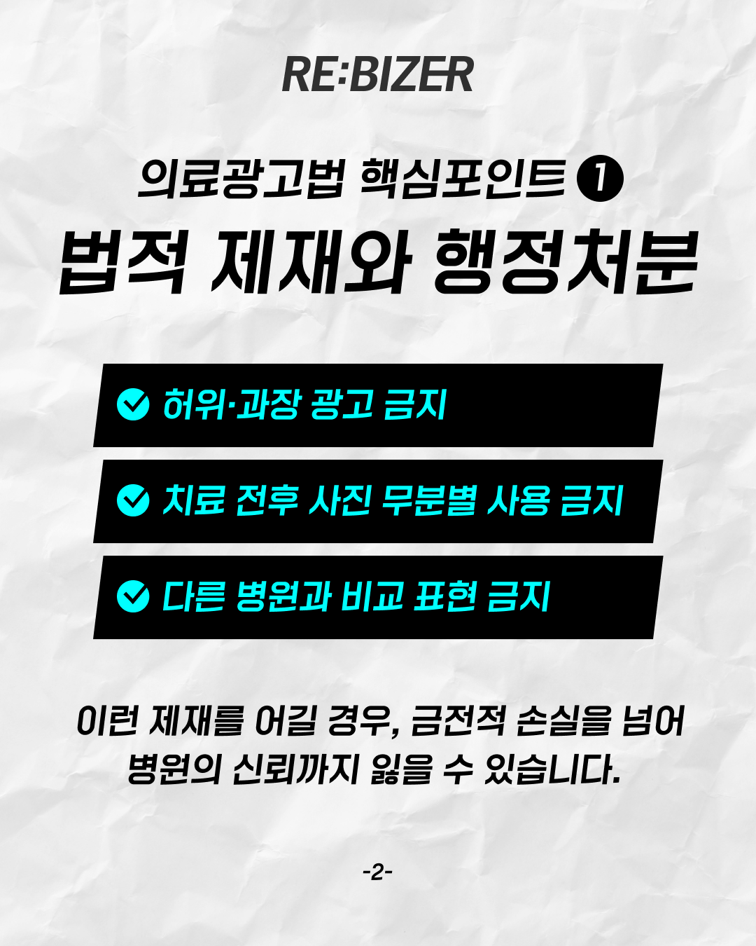 의료광고법을 가볍게 넘기면 큰 문제가 생길 수 있습니다.