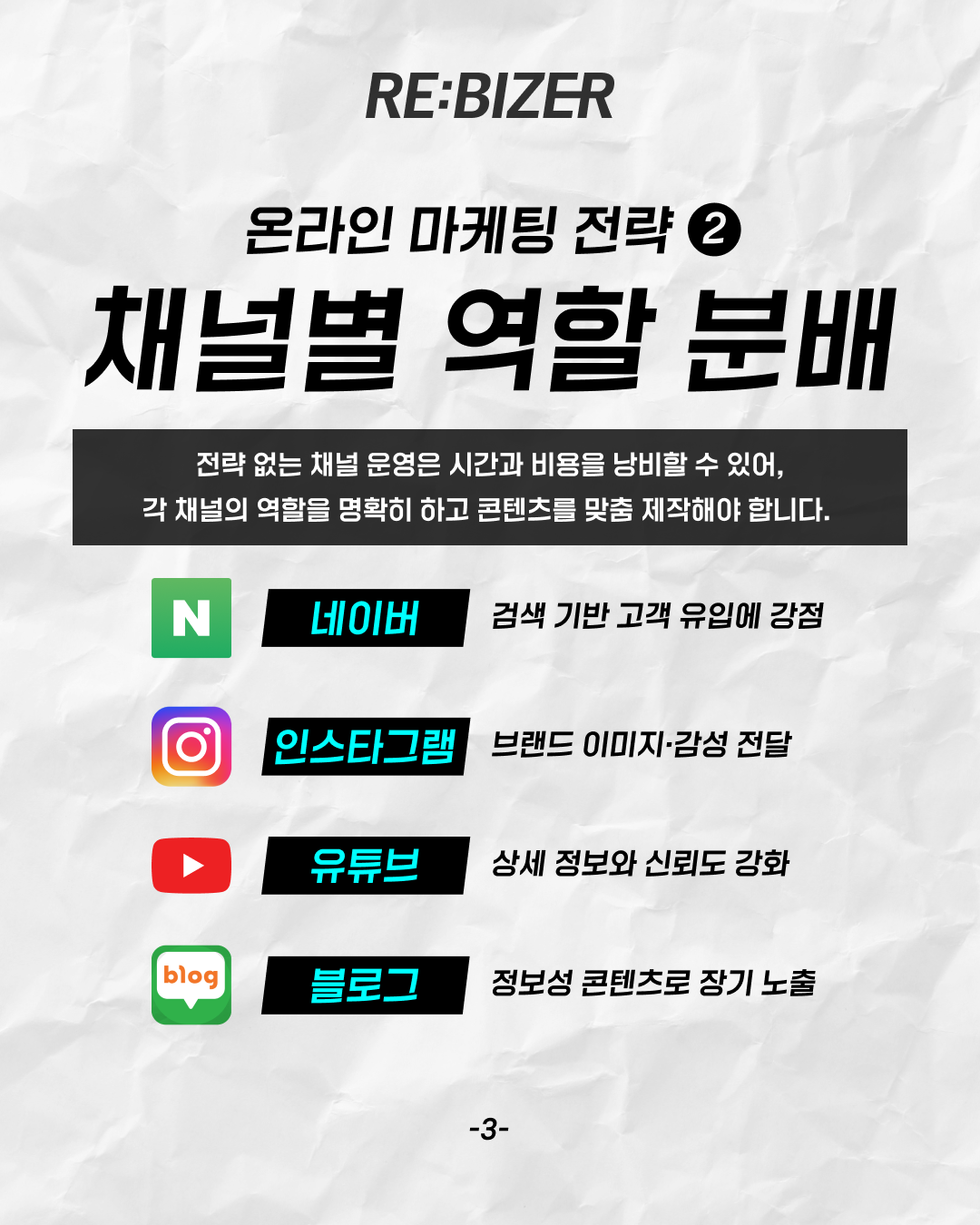 채널별 역할을 나누고,