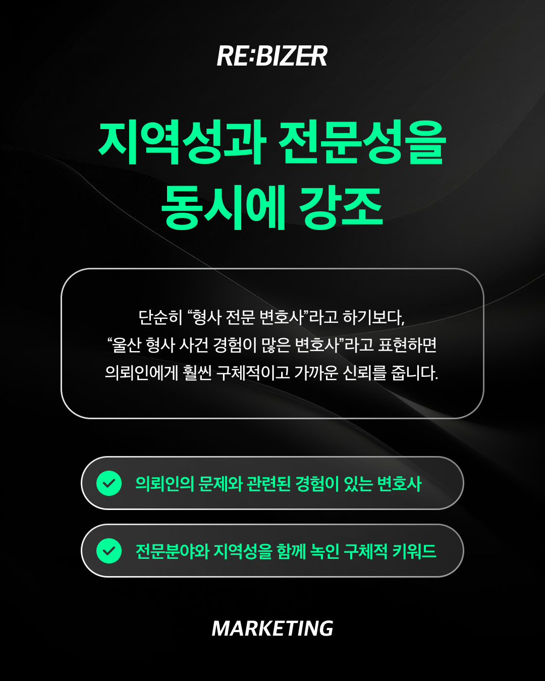 예를 들어, 단순히 “형사 전문 변호사”라고만 하기보다