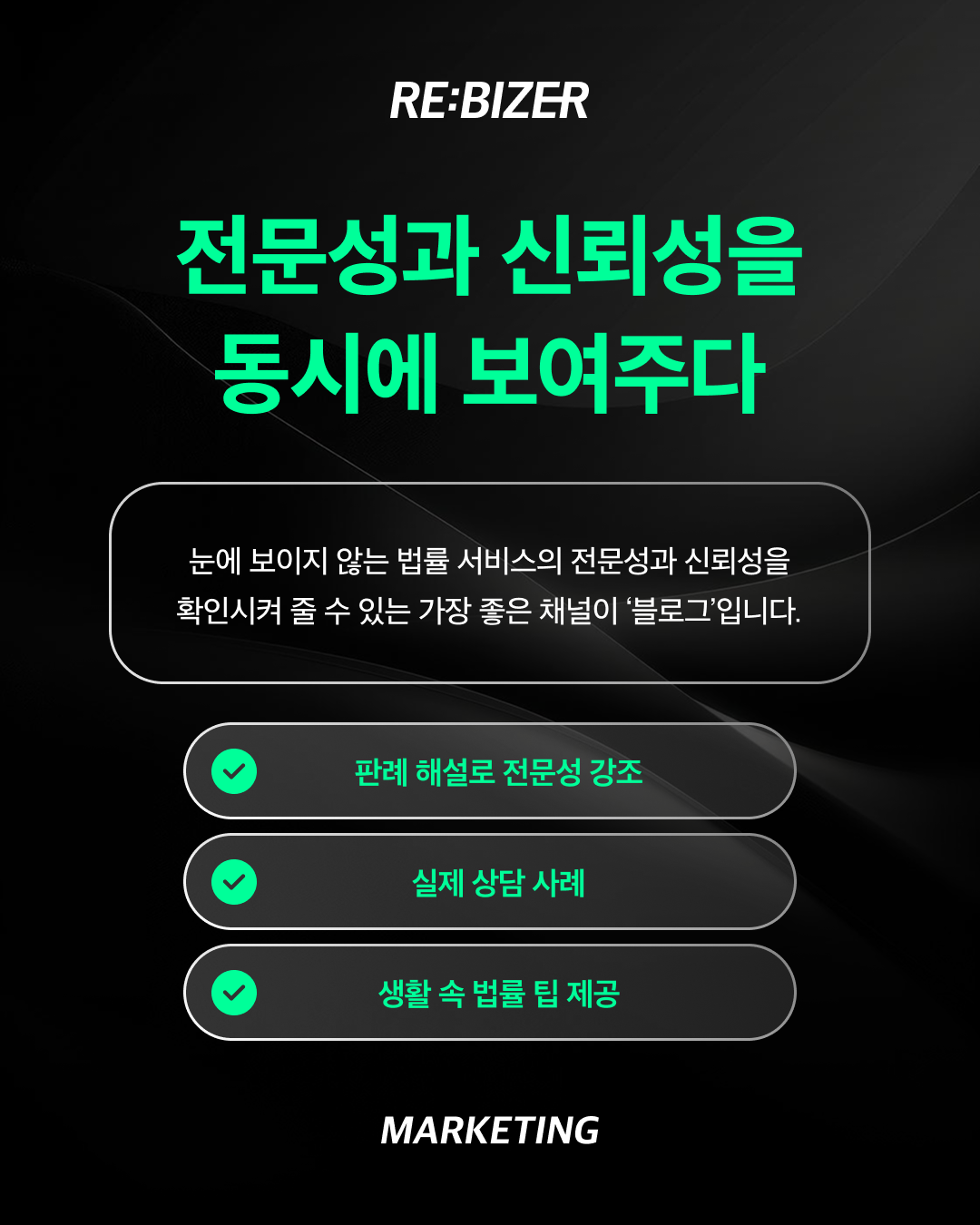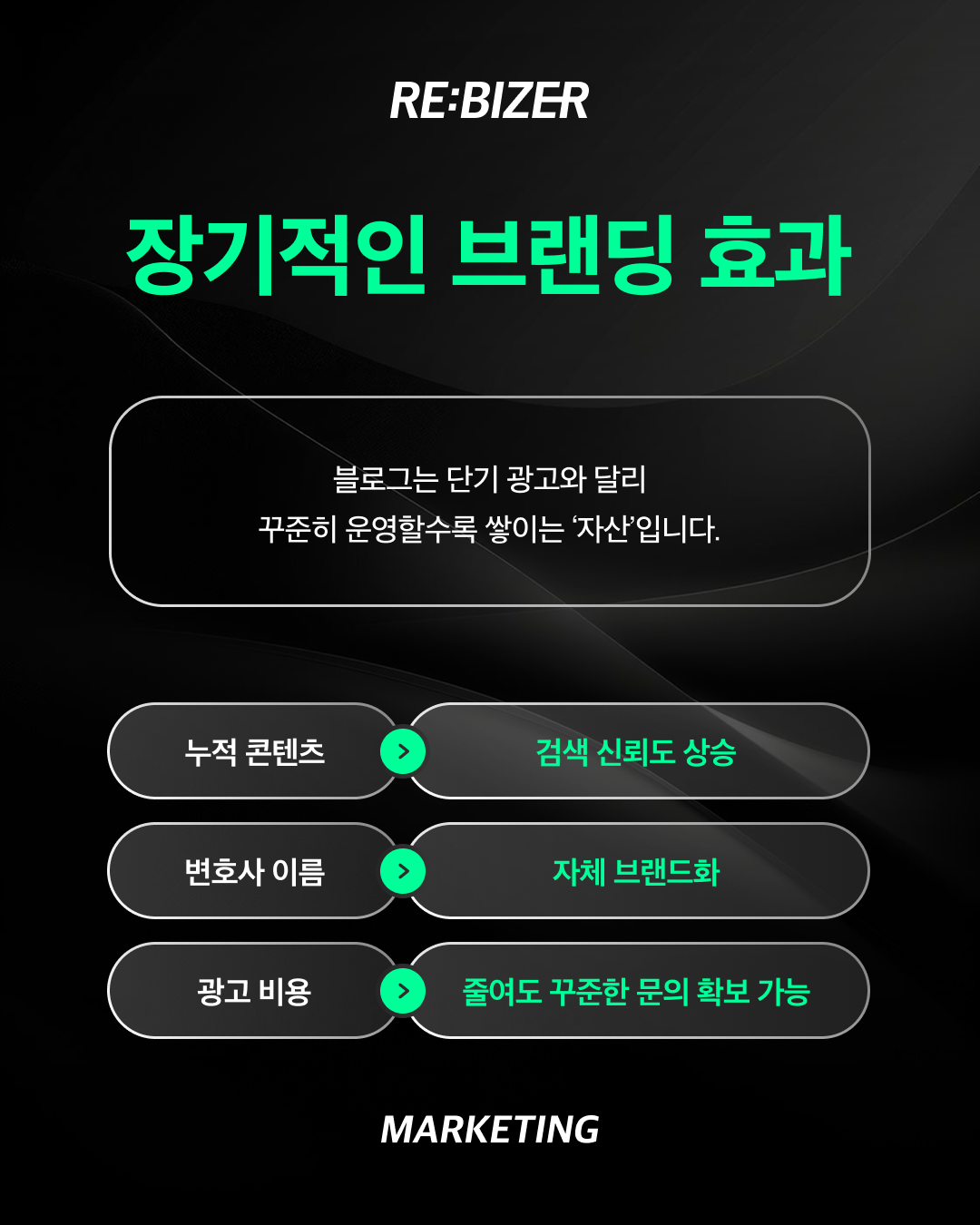 즉, 블로그는 장기적인 브랜딩과 수임 확보의 기반이 됩니다.
