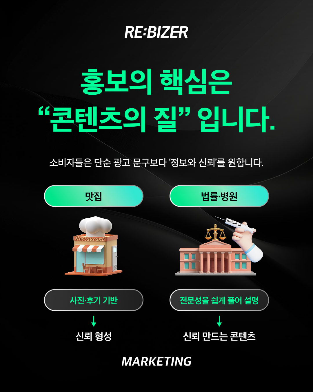 ✔ 업종별 전문 콘텐츠 제작 (법률·병원·식당·서비스 등)