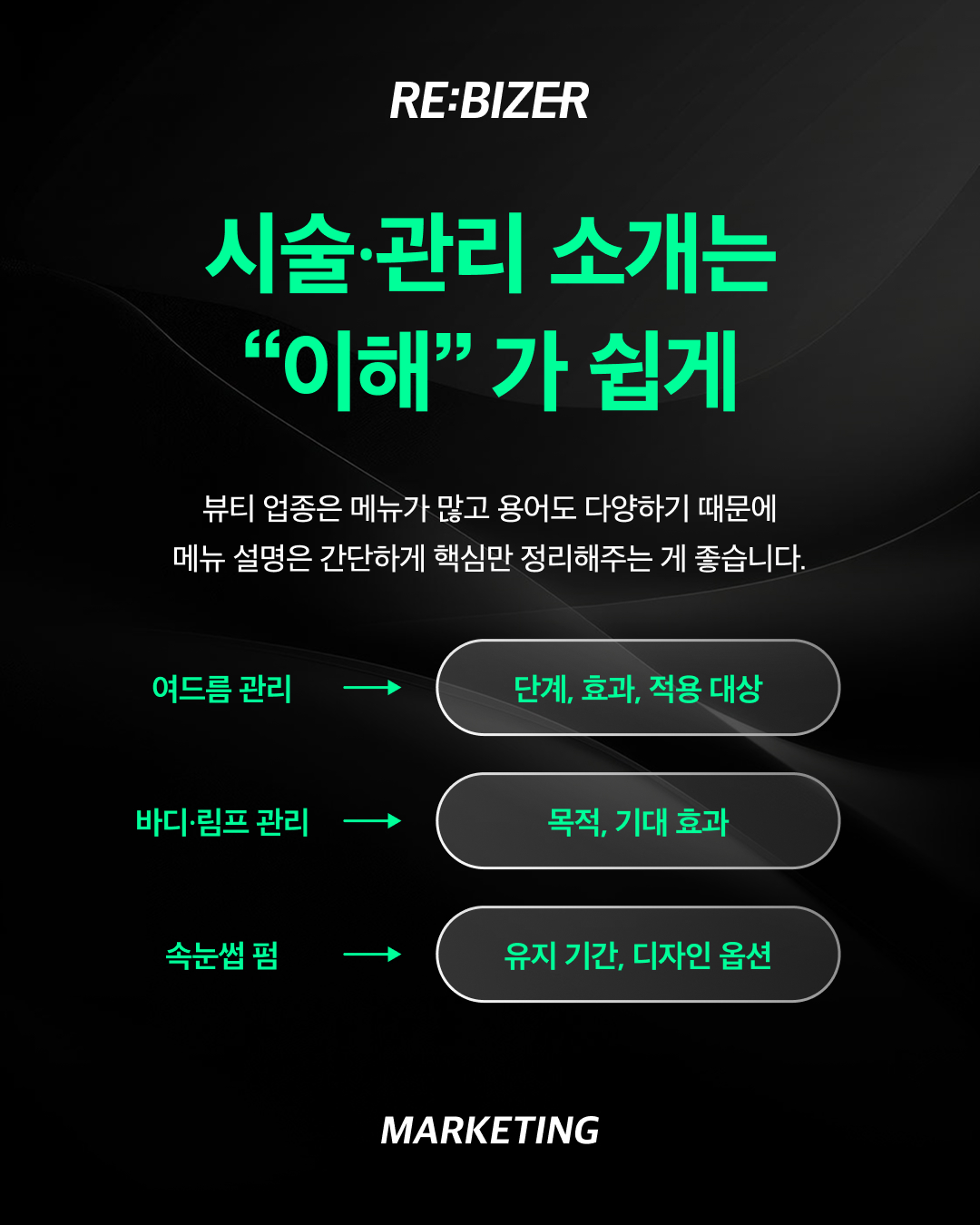 ■ 2. 시술·관리 소개는 이해하기 쉬우면서도 길지 않아야 합니다
