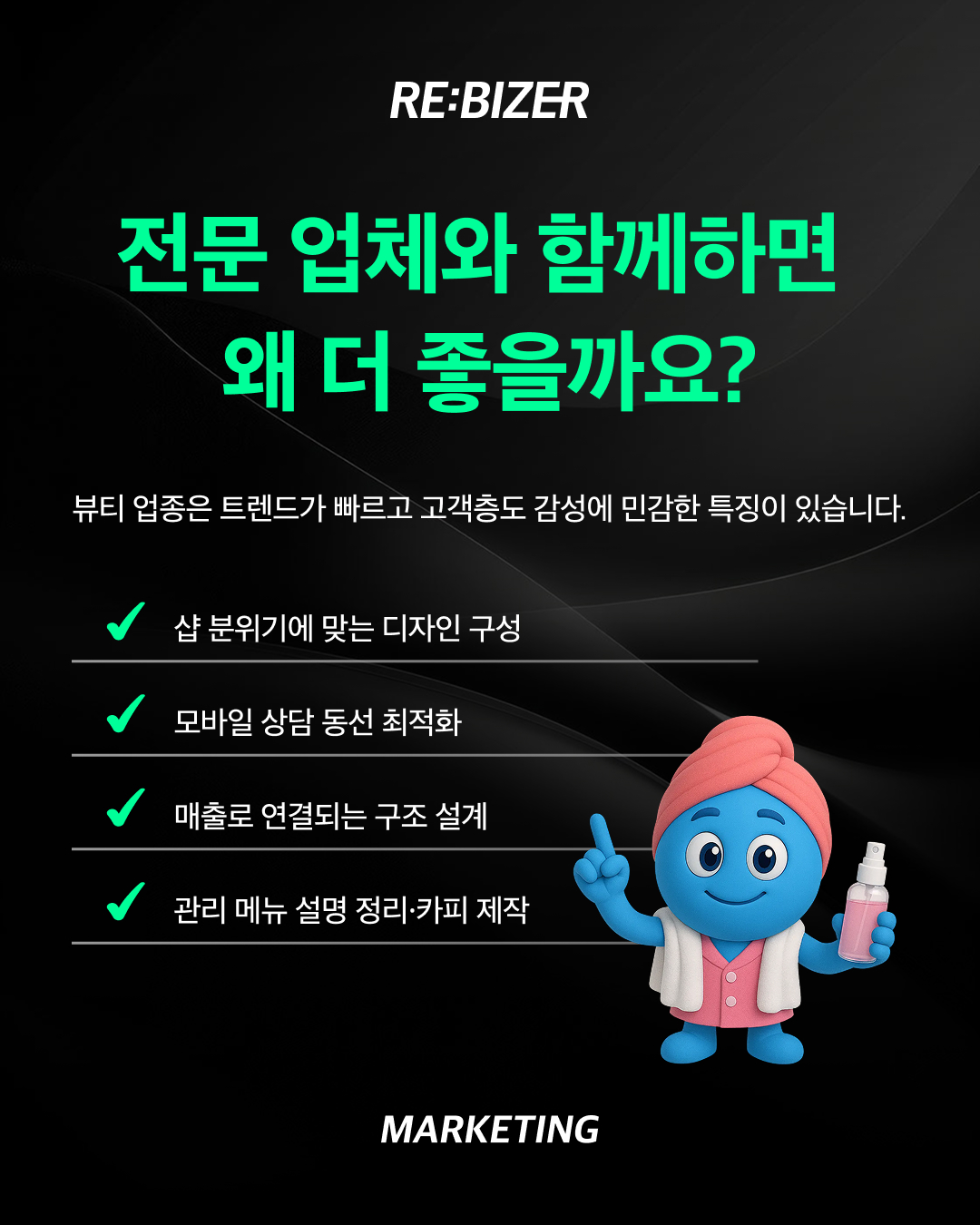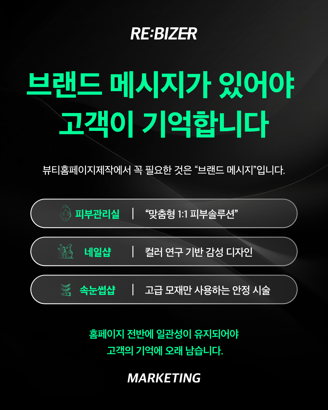 뷰티샵은 감성, 분위기, 서비스 신뢰가 전부예요.