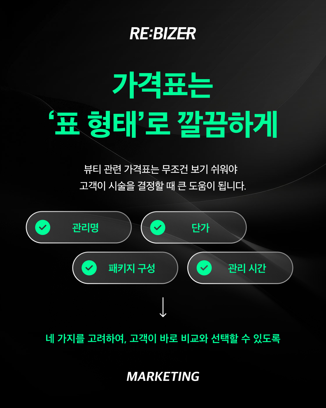 뷰티 관련 가격표는 무조건 보기 쉬워야