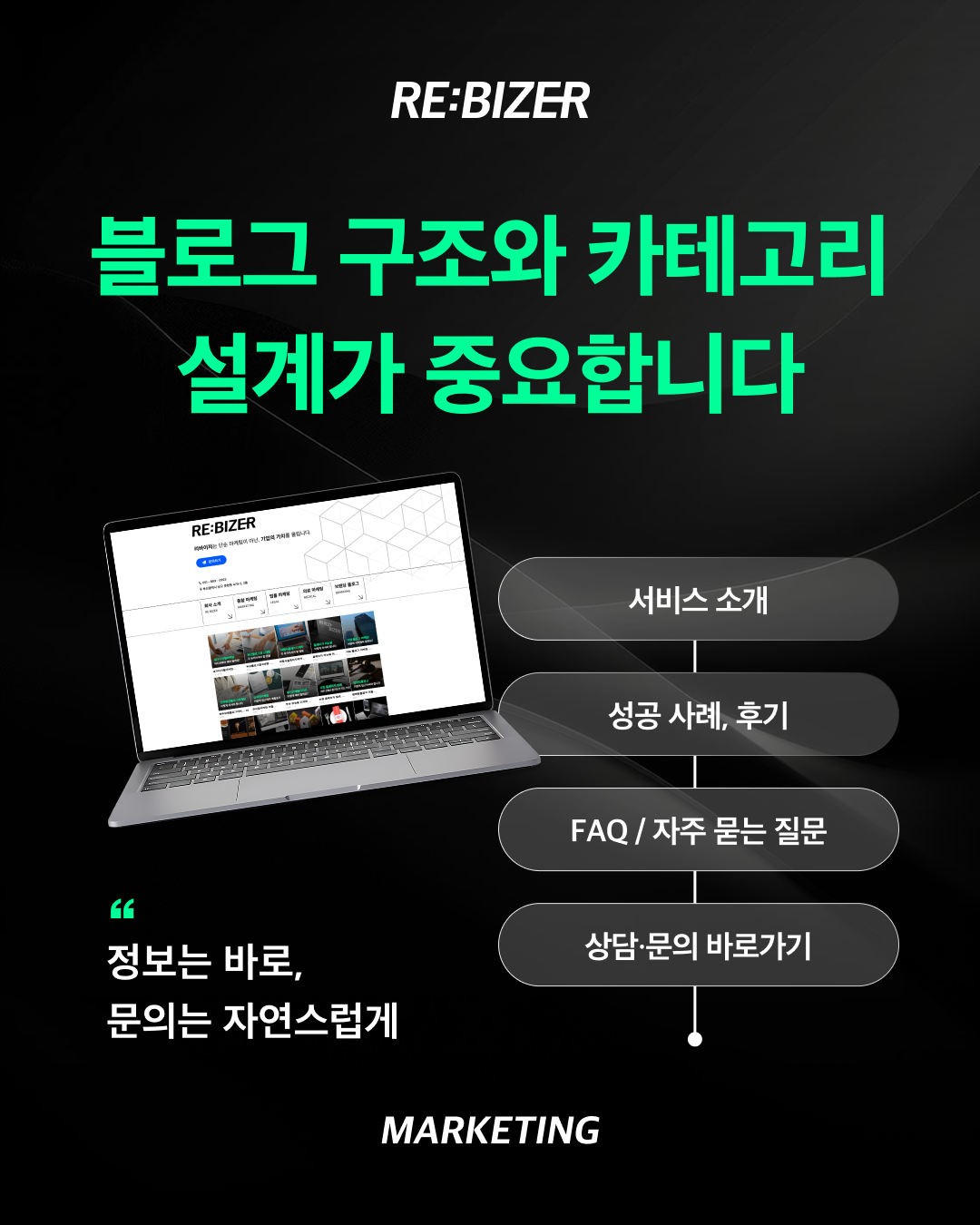 ‘보여지는 모습’보다 정보 구조와 카테고리 설계가 핵심이에요.