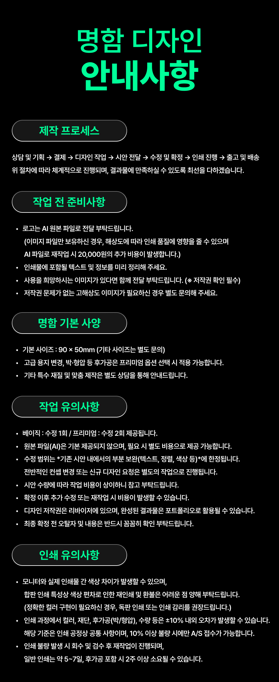 명함 인쇄 안내사항