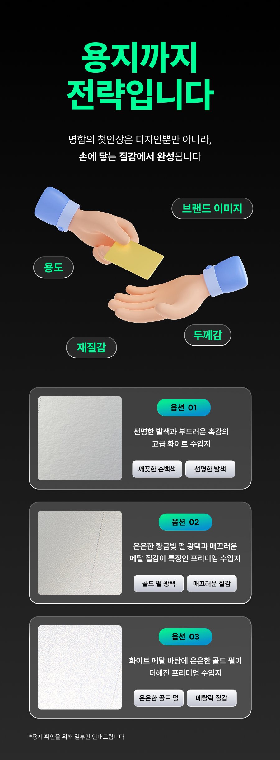 * 고급지 : 질감과 두께감으로 고급스러움 강조