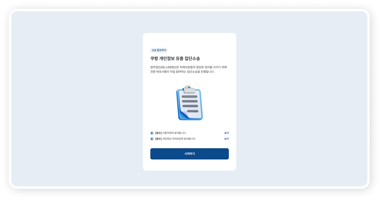 필수 동의 확인 후 바로 시작할 수 있도록 간결한 구조로 구성했습니다.