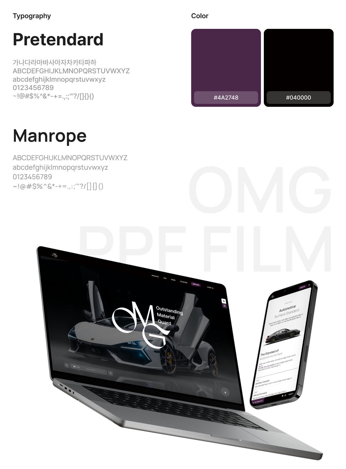 프리미엄 PPF 브랜드의 정체성을 첫 화면에서 명확하게 전달하는 데 중점을 두고 설계했습니다.