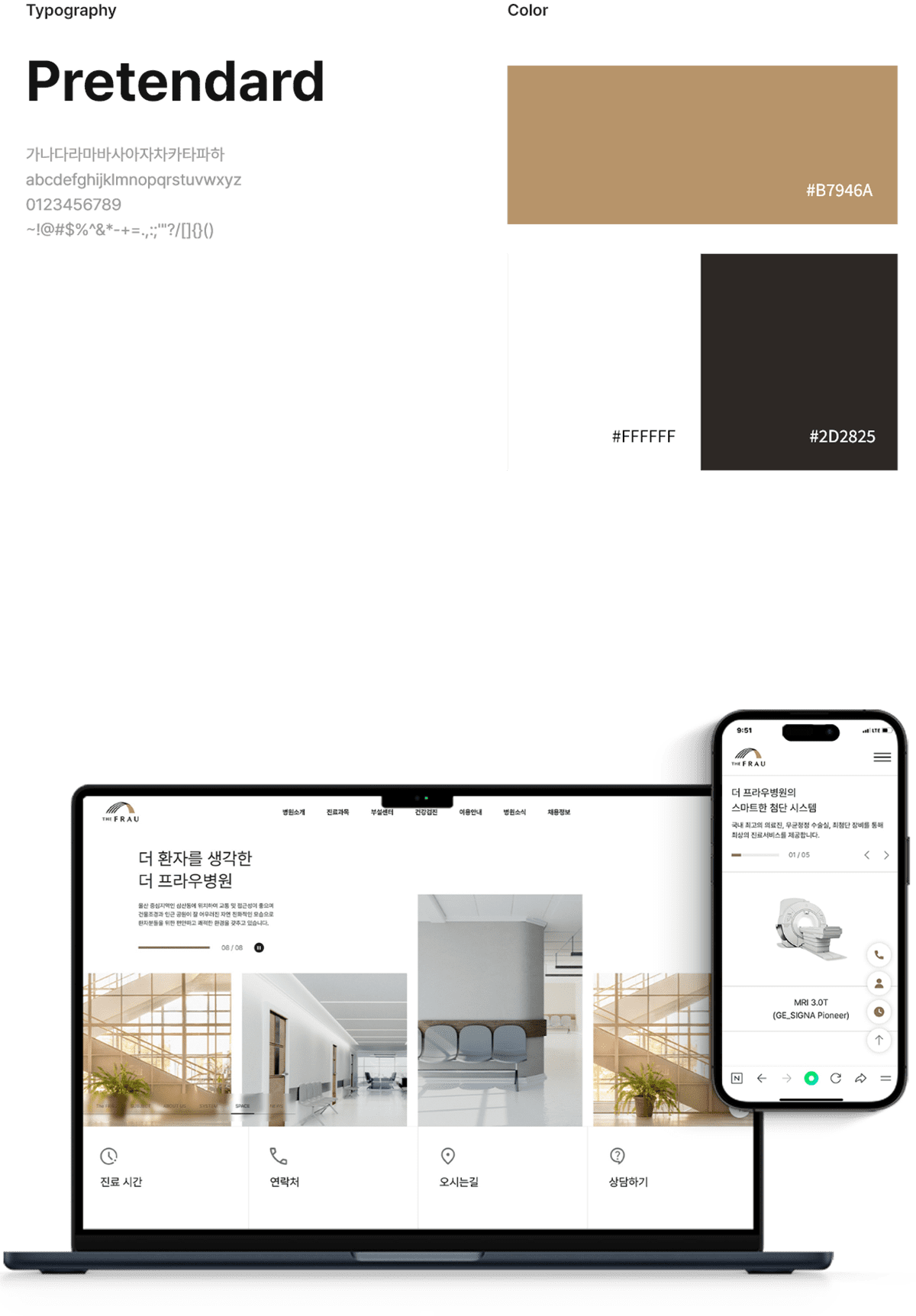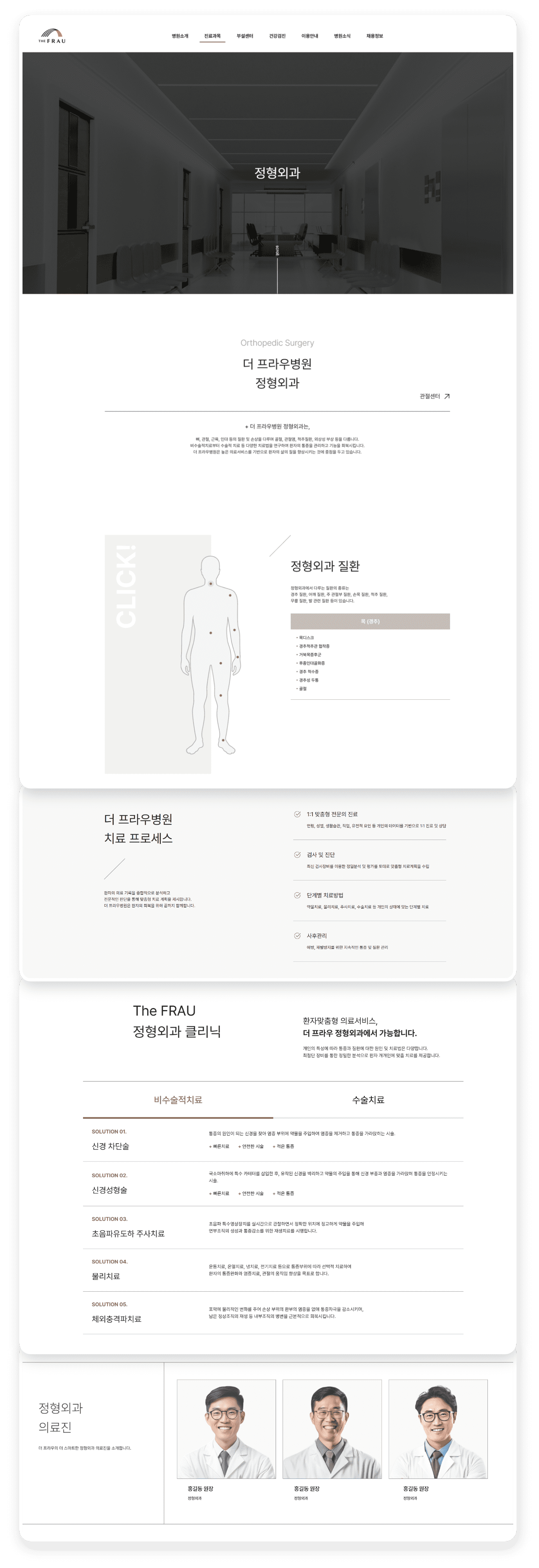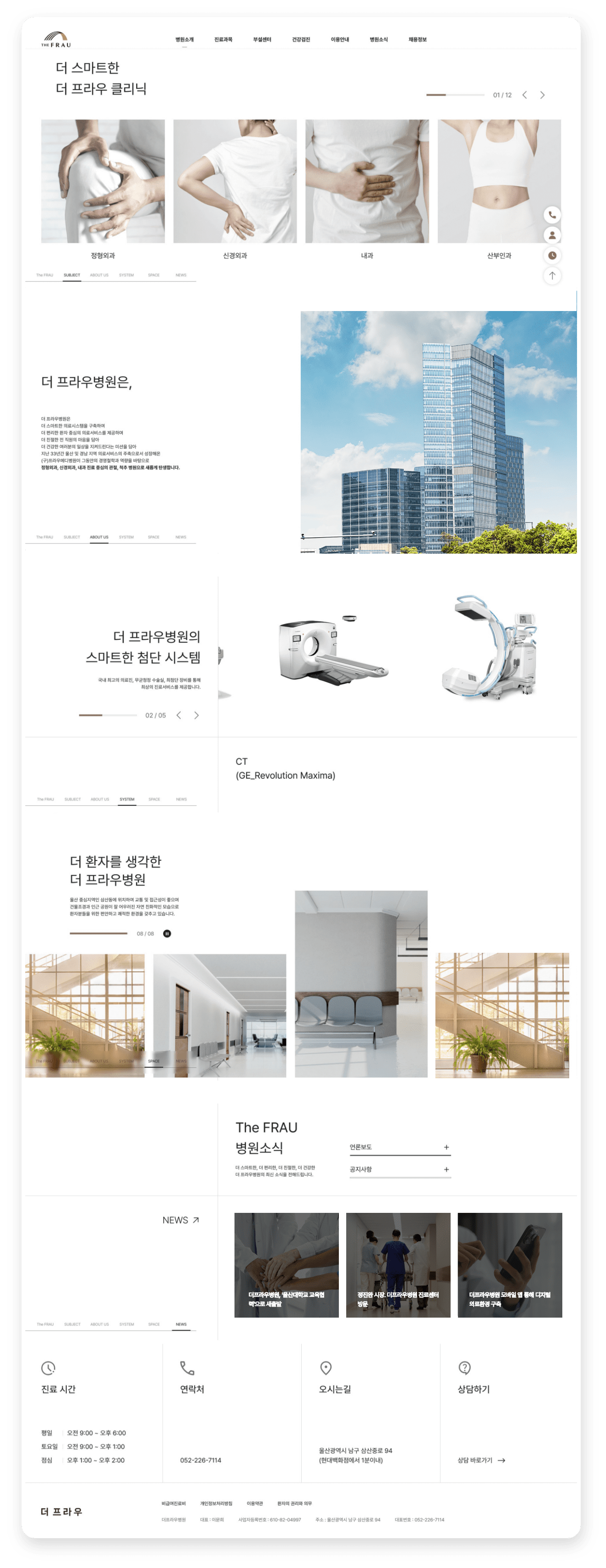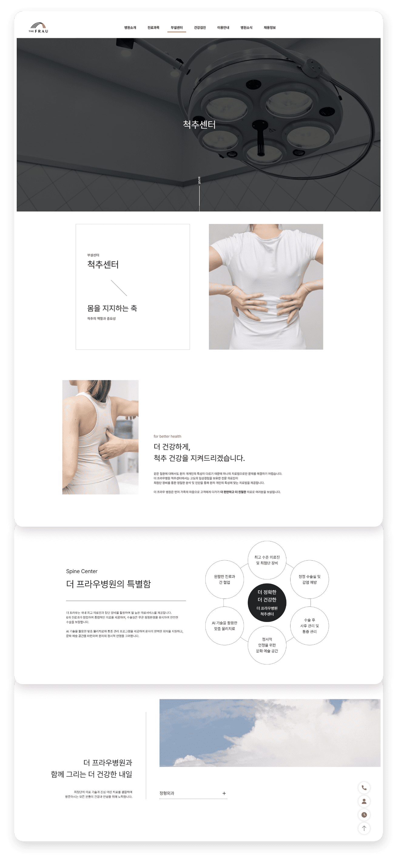 환자들이 안심하고 신뢰할 수 있는 이미지를 주기 위해 깔끔하게 레이아웃을 구성하였으며