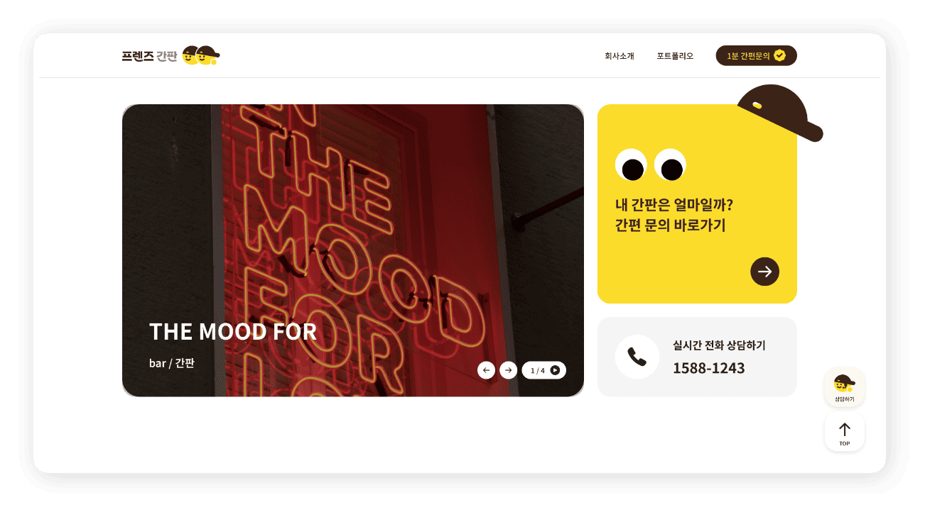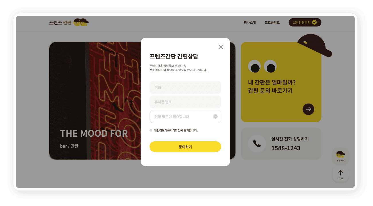 다양한 컨택 포인트를 배치하여 문의를 쉽게 연결할 수 있도록 구성하였습니다.