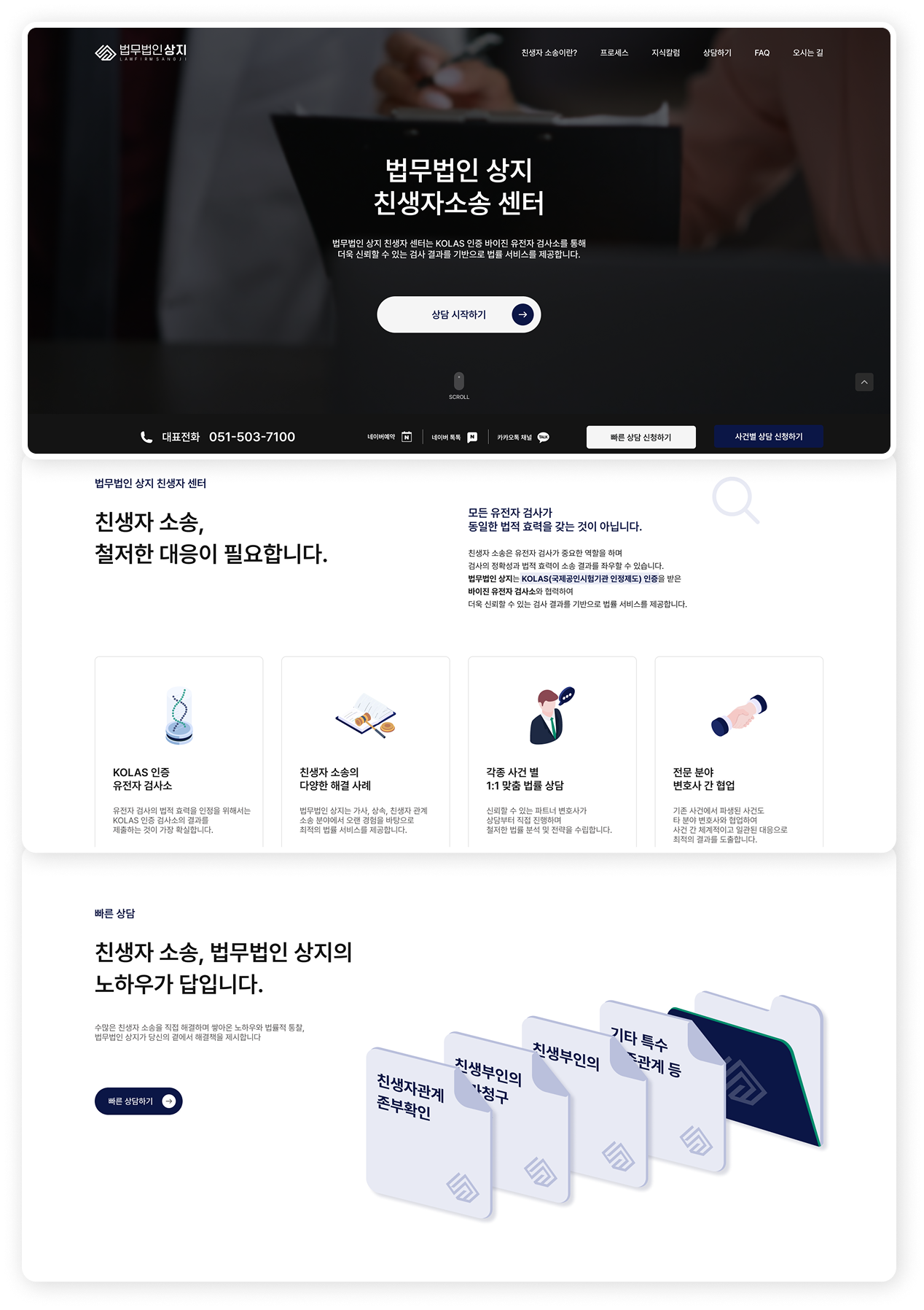 친생자 소송에 특화된 맞춤형 랜딩 페이지로, 의뢰인이 필요로 하는 정보를 빠르게 제공할 수 있도록 설계되었습니다.