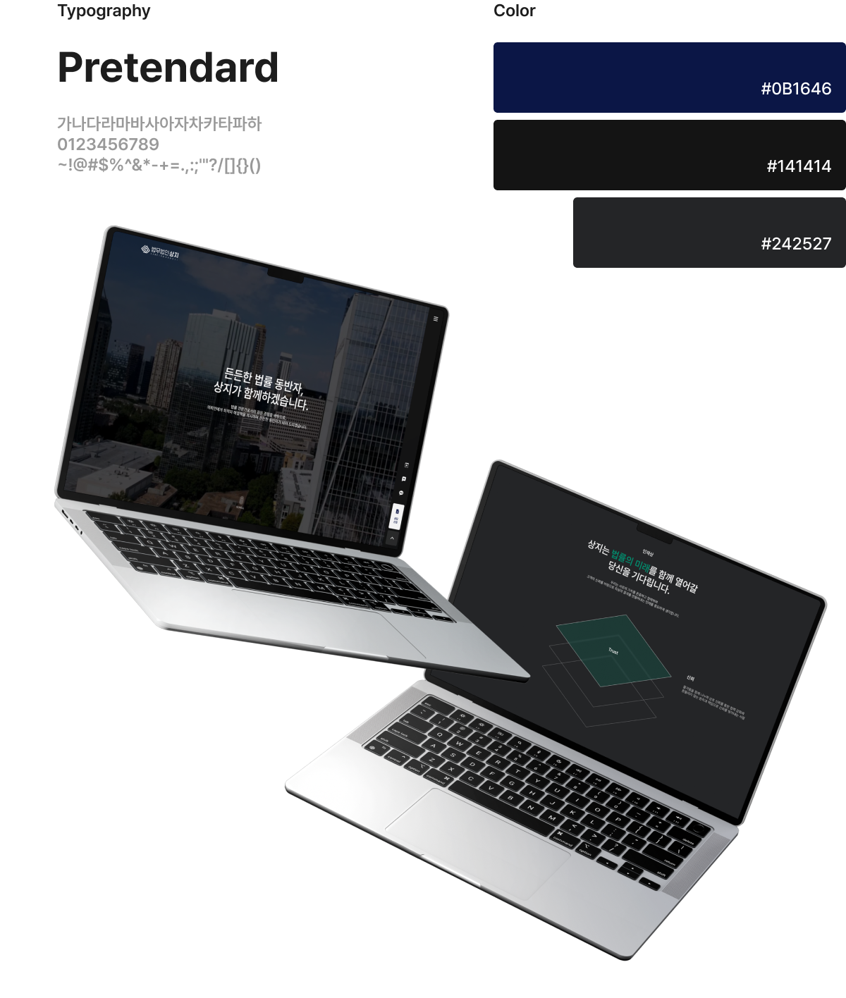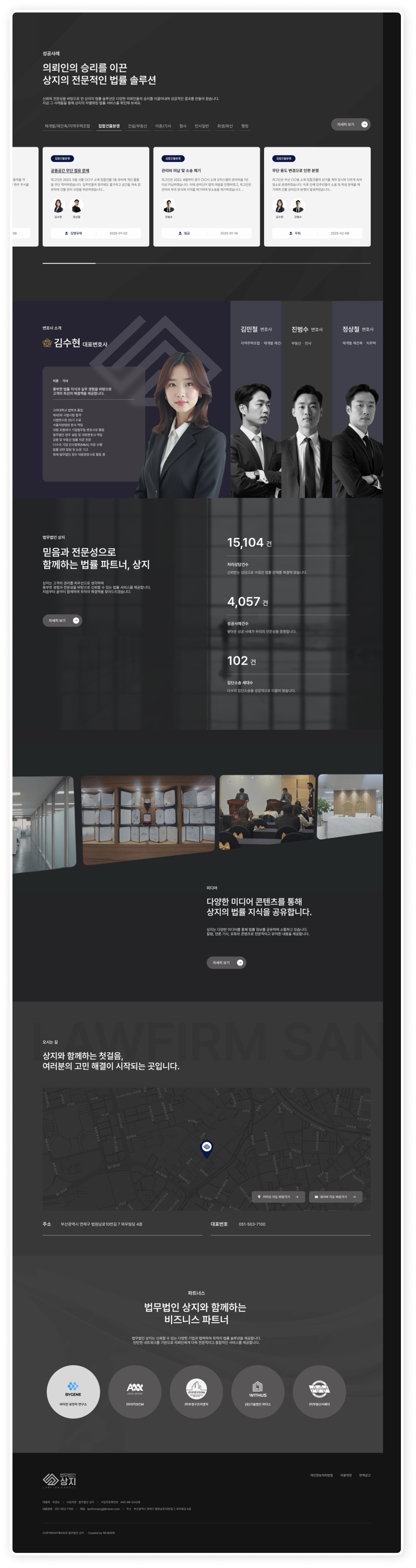 고급스럽고 세련된 레이아웃으로 구성된 메인 페이지는 법무법인 상지의 신뢰성과 전문성을 효과적으로 전달합니다.