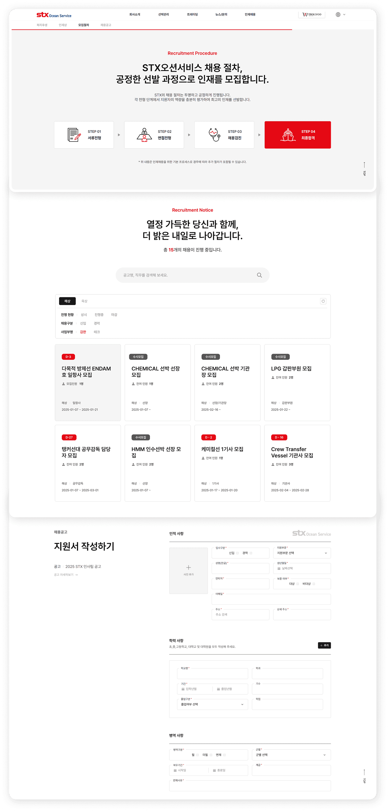 직관적인 UI와 단계별 구조를 통해 지원자가 필요한 정보를 빠르게 확인하고,