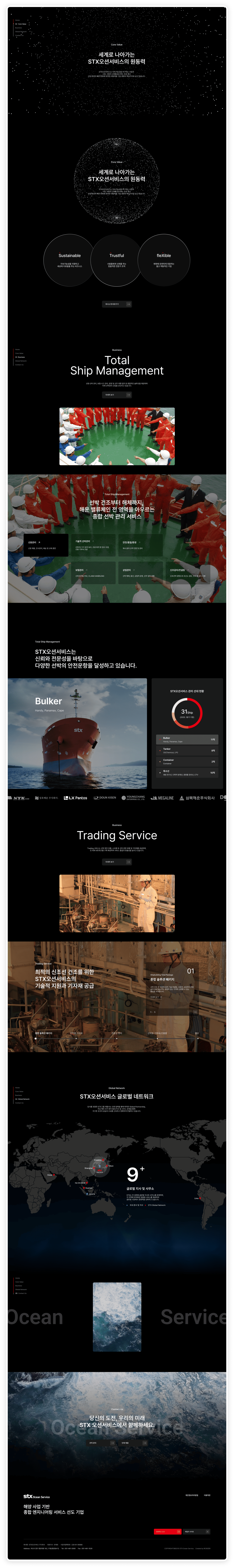 STX오션서비스의 메인 페이지는 해양 비즈니스의 신뢰감과 전문성을 강조하며,