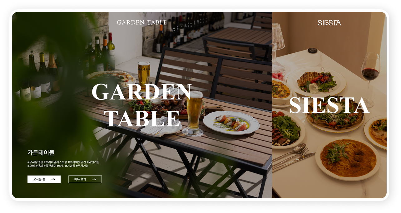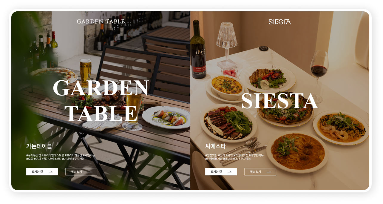 고급스럽고 세련된 레이아웃의 메인 페이지는