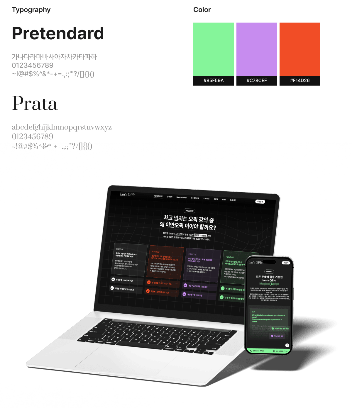 이안오픽의 브랜드 정체성과 철학을 담은 인터랙티브 원페이지 랜딩사이트입니다.