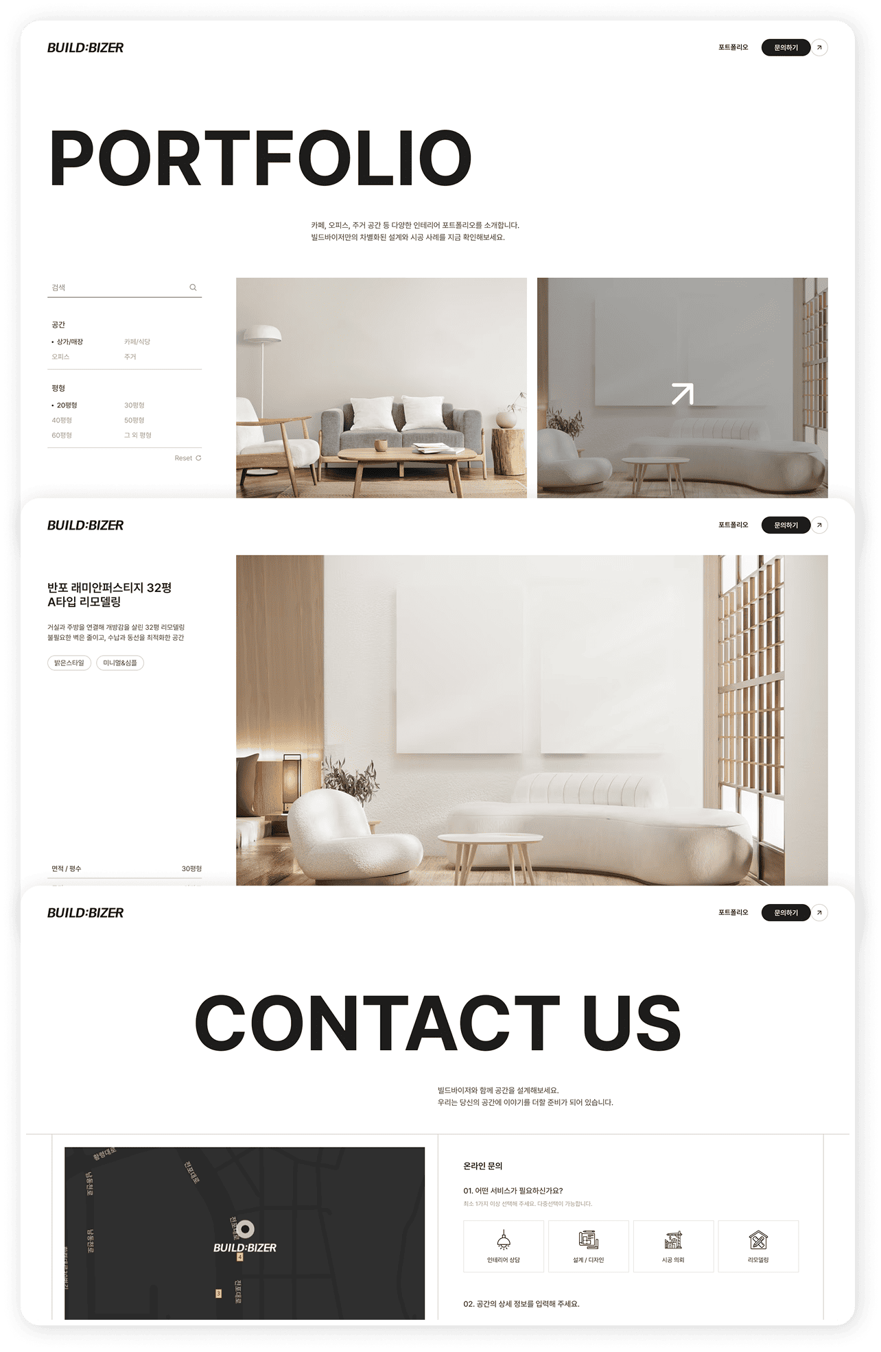 빌드바이저 메인 홈페이지는 인터랙티브 구조를 통해